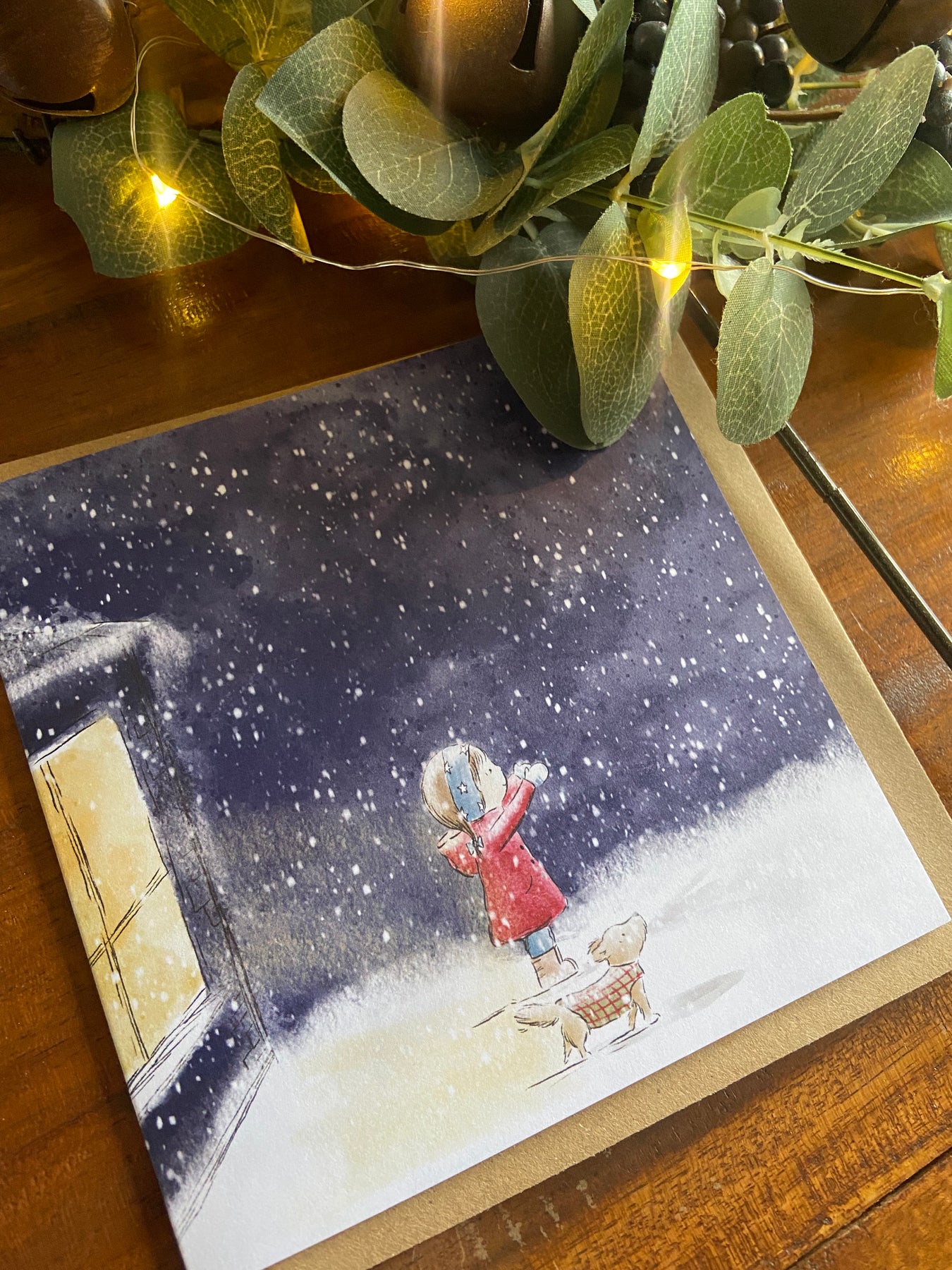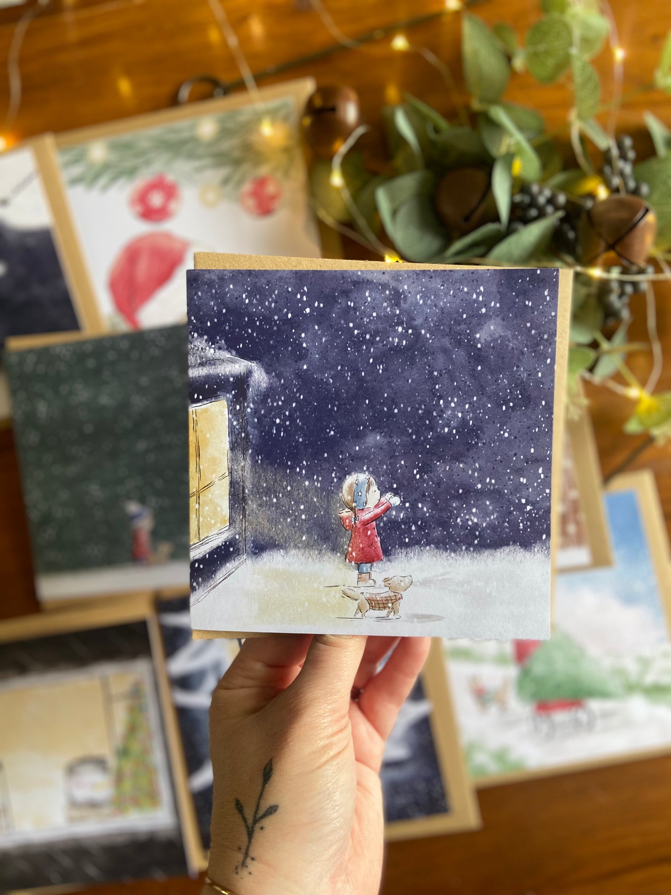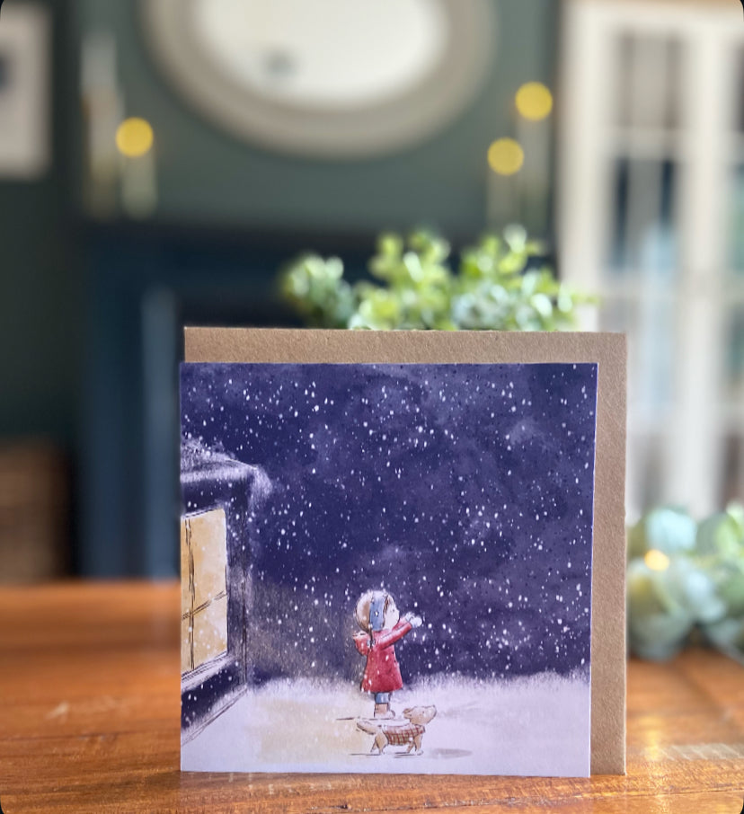Each illustrated card is printed on recycled cardstock, measures 14cm square, and comes with a recycled kraft envelope. Cards are blank inside for your own message.!