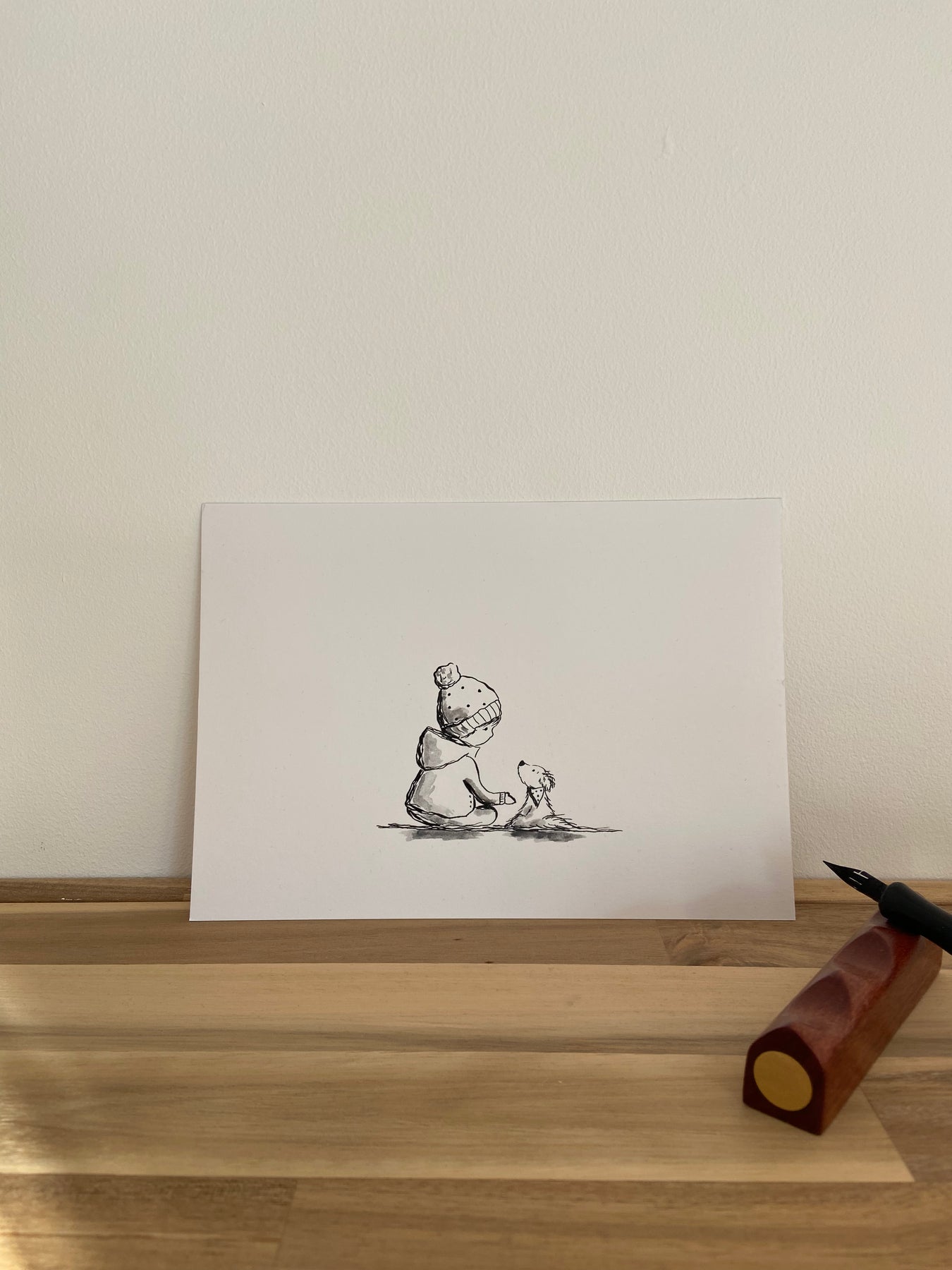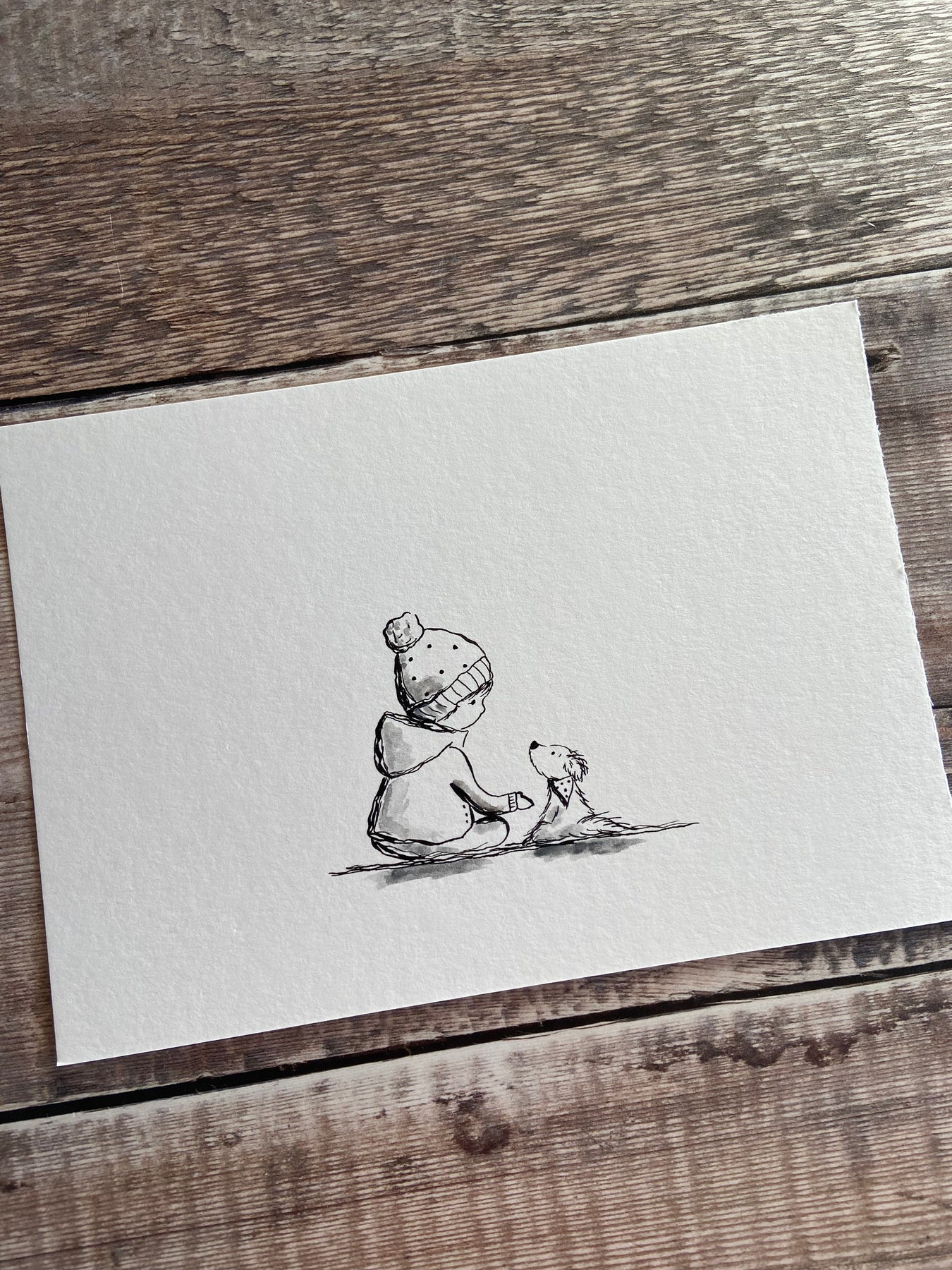 An original signed ink and watercolour illustration. The illustration is signed and packaged on a sturdy backing board, in a compostable wrap, ready for gifting!